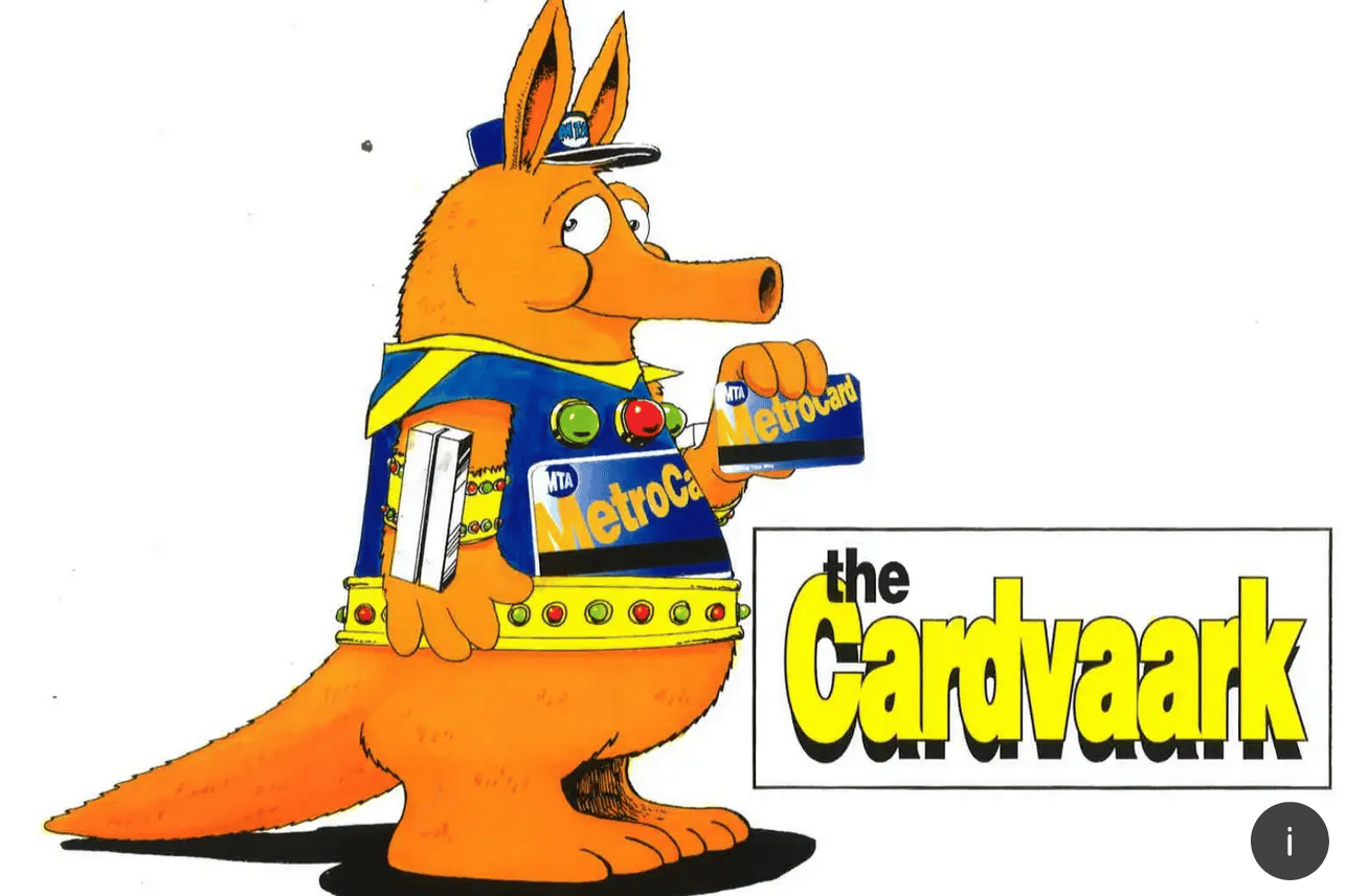 The Cardvaark was a proposed mascot for the MetroCard as it was being developed, presented to MTA executives in 1993. Seen here holding a MetroCard in the old primarily blue design, he has a card swiper on his right arm, presumably to instruct New Yorkers on how this new swiping technology works. He also has something of a Mona Lisa smile; the cheeky grin, the raised brow, the slightly unfocused gaze, just what is he thinking? They started to price out costumes and discuss which stations the Cardvaark would be at to pump people up about this new transit development when an unknown executive smothered the poor Cardvaark in its cradle, never to see the light of day. To have eaten his graven image on an ice cream cake would have been a zenith of my year, and to have missed the opportunity is one of my great regrets, not just for 2025 but in life.